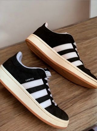 Vendo un par de zapatillas Adidas Campus. Son de color negro y blanco, y están en buen estado.