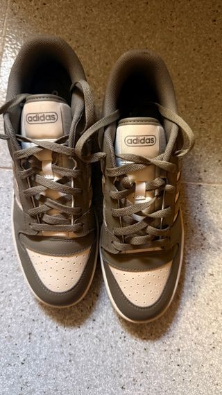 Zapatillas Adidas en tonos gris y beige. Ideales para un look casual y cómodo. - Son de caña baja. - Tienen cordones de color gris. - El diseño es sencillo y elegante.