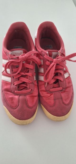 Zapatillas deportivas de color rosa. - Diseño clásico con las tres rayas blancas. - Cierre con cordones. - Suela de goma.