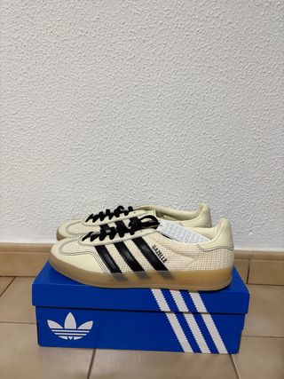 Zapatillas Adidas Gazelle Indoor en color beige con detalles en negro. Un clásico renovado. - Diseño icónico. - Materiales de calidad. Totalmente originales y sin uso (se pueden aportar pruebas)