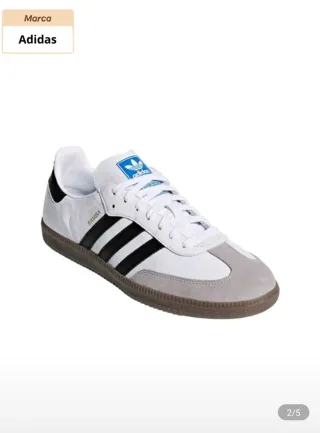 Zapatillas Adidas Samba con un diseño clásico y deportivo. - Parte superior de ante y cuero. - Tres rayas laterales icónicas. - Suela de goma. - Cierre de cordones.