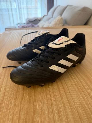 Zapatillas deportivas Adidas. - Diseño clásico con las tres franjas. - Cierre de cordones. - Suela con tacos para césped.