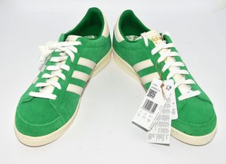 Zapatillas Adidas Campus en color verde, talla 39. - Diseño clásico de Adidas. - Tres rayas blancas laterales. - Logo de Adidas y Campus en la lengüeta.