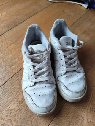 Zapatillas deportivas Adidas en color blanco, talla 42. Perfectas para el día a día. - Diseño clásico de Adidas. - Cierre con cordones. - Suela de goma.