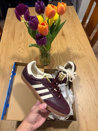 Zapatillas Adidas Samba OG en color granate con detalles dorados. - Modelo Samba OG. - Combinación de colores granate y dorado. - Talla 42.5. Estan sin estrenar y en su caja original! Precio negociable