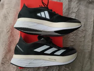 Adidas Adizero Boston 11 con varillas de carbono y suela continental. Talla 46 2/3. - Diseño en negro, gris y blanco.