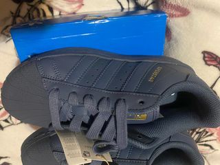 Zapatos Adidas Superstar en color azul con detalles dorados. - Diseño clásico. - Cierre de cordones. - Logo Superstar en dorado.