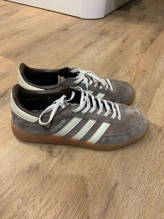 Zapatillas Adidas Handball Spezial en color gris y blanco. Un clásico para tu día a día. - Diseño retro. - Suela de goma. - Cordones blancos.