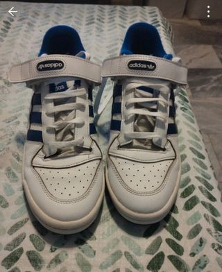 Zapatillas Adidas Forum Low en blanco y azul. Un clásico que combina estilo y comodidad. - Diseño icónico de Adidas. - Cierre con velcro y cordones. - Detalles de las tres rayas en azul. Originales y como nuevas