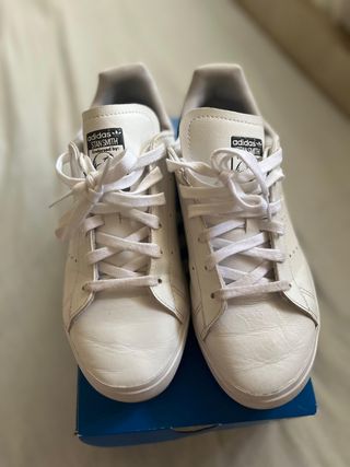 Zapatillas Adidas Stan Smith originales para niño, en color blanco. Son un calzado impecable, casi nuevo y cómodas. - Modelo Stan Smith. - Ideales para uso diario. - Talla de niño: 35 -Incluye caja original.
