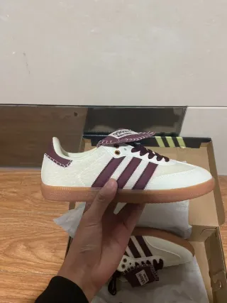 Zapatillas Adidas Samba en colaboración con Wales Bonner. Originales y hago envío rápido 💪🏼 - Color principal blanco con detalles en marrón. - Suela de goma marrón. "Lo único malo es que la caja está destrozada ya que la tenía almacenada ya que fue un regalo pero nunca me las puse, no me gustaron, envío con la caja y el papel"