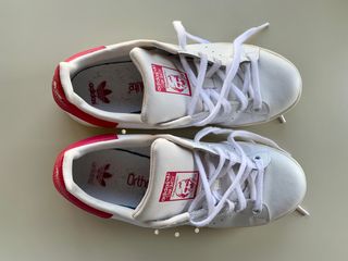 Zapatillas Adidas Stan Smith, logo fucsia, talla 38 2/3. En perfecto estado.