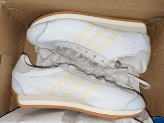Zapatillas Adidas modelo Country OG en color blanco y talla 39. Un clásico atemporal con un diseño retro. - Tres rayas laterales en color crema. - Suela de goma. - Cierre con cordones.
