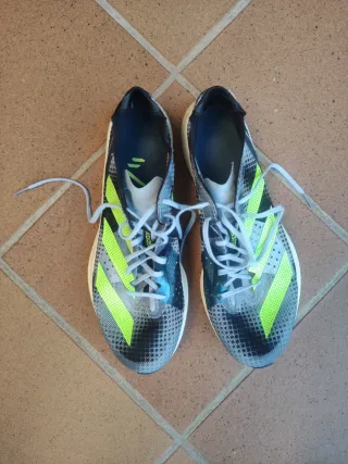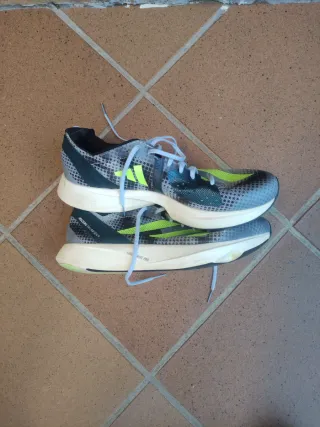 Zapatillas deportivas Adidas Adizero Takumi Sen 9. Muy pocos kms. Muy ligeras. Ideales para distancias cortas. Demasiado técnicas para mi.