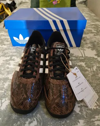 Zapatillas Adidas x Wales Bonner con un llamativo estampado de leopardo. - Diseño icónico Samba. - Detalles de las tres rayas blancas. - Suela de goma. - Incluye cordones blancos adicionales.