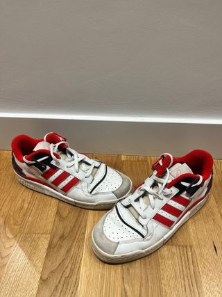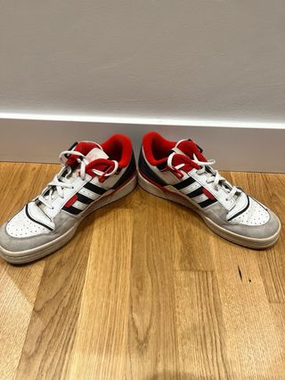 Zapatillas deportivas Adidas Forum Exhibit Low. - Diseño bajo con detalles en rojo y azul. - Cierre de cordones. - Suela de goma.