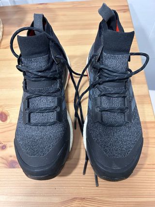 Zapatillas Adidas Terrex de caña media, ideales para senderismo y actividades al aire libre. - Diseño en tejido de punto. - Cierre con cordones. - Suela de goma para mayor agarre.