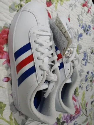 Zapatillas deportivas para niñ@ o adulto de la marca Adidas. Sin estrenar,completamente nuevas como se puede apreciar en las fotografías. Talla 37 y un tercio. - Diseño clásico en blanco con detalles en negro. - Cierre de cordones. - Logo de Adidas en el talón.