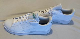 Zapatillas deportivas Adidas Advantage Base 2.0 en color blanco. Un diseño clásico y versátil. - Cierre con cordones. - Detalle de perforaciones laterales. - Suela de goma. - Letras Adidas en color verde. Mu poco uso, 2 o 3 veces y muy cuidadas