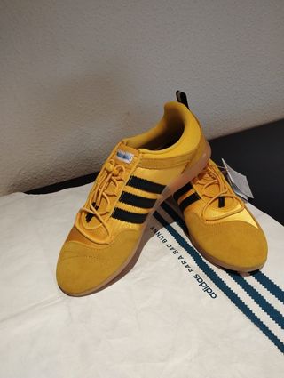 Zapatillas Adidas Bad Bunny Bold Gold, en color amarillo. Zapatillas nuevas sin estrenar, compro y vendo zapatillas exclusivas. Si te interesa preguntame y hablamos. El precio de este modelo en internet está por 40€ más ya que se llevan comisiones. Aquí las puedes conseguir a un mejor precio si tienes dudas mensaje. (Prueba en la foto)