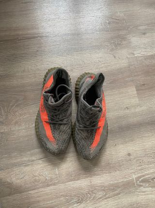 Zapatillas Adidas Yeezy 350 Carbon Beluga, nuevas y sin usar, conservadas en su caja original. - Modelo: Yeezy Boost 350 V2 - Color: Carbon Beluga (gris y naranja) - Estado: Nuevo, sin estrenar - Incluye caja original