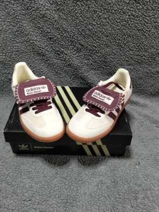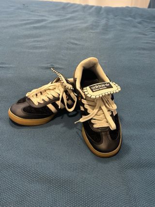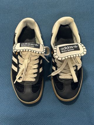Zapatillas deportivas Adidas x Wales Bonner en color negro y blanco. - Diseño con las icónicas tres rayas de Adidas. - Detalle de logo de Adidas y Wales Bonner en la lengüeta. - Cordones de color crema. Talla pequeño por eso puse un 36.5