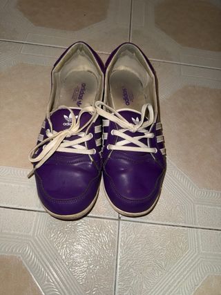 Zapatillas deportivas Adidas en color morado. - Diseño clásico con tres rayas. - Cierre de cordones. - Logo de la marca en la plantilla.