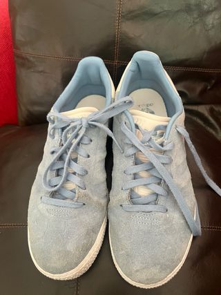 Zapatillas Adidas Campus originales, nada de replicas!!! muy poco uso, se las regalaron justas de número y en dos puestas se la quedaron pequeñas. En tonos azul claro y blanco. - Detalle de las tres franjas blancas. - Logo CAMPUS en el lateral. - Suela de goma. - Cierre con cordones.