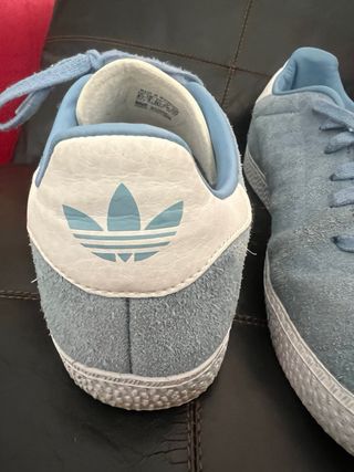 Zapatillas deportivas Adidas Gazelle en color azul claro y blanco. Perfectas para el día a día. - Exterior de ante. - Cierre con cordones. - Suela de goma.
