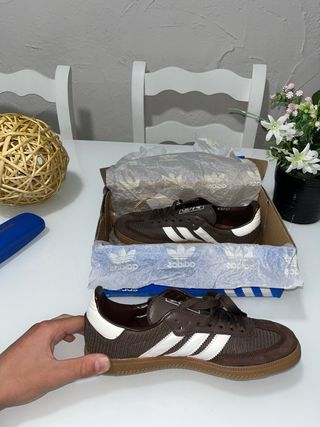 Zapatillas Adidas Samba en color marrón Earth Strata. - Diseño clásico. - Detalles en blanco. - Suela de goma. Precio negociable Envíos rápidos