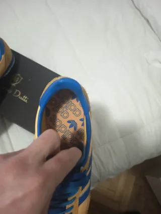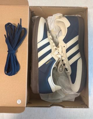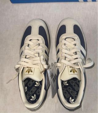 Zapatilla Adidas Samba OG de mujer en talla 40 2/3. Color azul y beige. Con cordones beige y cordones azules de repuesto. Estáb sin estrenar, con etiqueta y su caja.