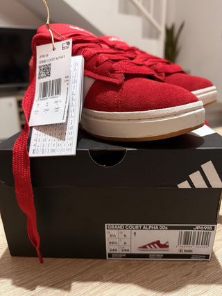 ¡Eleva tu estilo urbano con estas Adidas Grand Court Alpha 00s! Un modelo que mezcla la estética clásica del tenis con el volumen y la actitud de los años 2000. • Estado: Completamente nuevas, a estrenar (con etiquetas y caja original como se ve en las fotos). • Color: Rojo vibrante con las tres bandas icónicas en blanco y suela de caramelo (gum sole) que le da un toque vintage increíble. • Talla: 39 1/3 (US 6.5 / UK 6 / 24.5 cm). • Código de modelo: JP6918. • Detalles: Material de ante de alta calidad, cordones anchos estilo "fat laces" y lengüeta acolchada para máxima comodidad. Hago envíos rápidos.