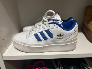 Zapatillas Adidas Forum Bold en buen estado. Combinan blanco y azul para un look moderno. - Diseño clásico con detalles en azul. - Suela gruesa y cómoda. - Logo de Adidas en dorado.