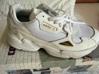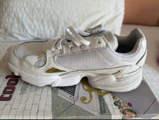 Zapatillas Adidas Falcon en color blanco y detalles dorados. Ideales para un look deportivo y casual. - Sin usar. - Talla 36.5.