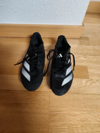 Zapatillas deportivas Adidas Adizero, talla 38. Ideales para running. - Diseño moderno en negro y blanco. - Cierre de cordones. - Logo de Adizero en la lengüeta. Las vendo porque al usarlas por mi pisada me hacen daño y es un regalo de reyes que ya no puedo descambiar,tiene un solo uso. Cuestan 160 las vendo por 70 euros.
