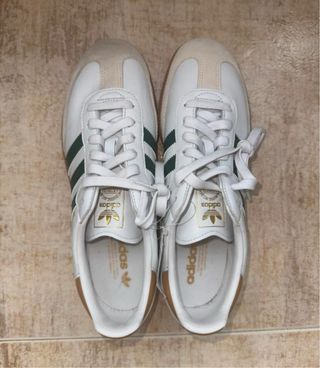 Zapatillas Adidas Samba OG Crystal White / Collegiate Green / Alumina. Parte superior de piel y material sintético. Suela de goma. Talla 44 de hombre. Sin estrenar y con etiqueta. Sin caja, pero te lo puedo enviar en otra y bien protegida para el envío.
