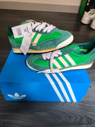 Vendo zapatillas Adidas SL72 en color verde y blanco, talla 38, modelo unisex. Diseño clásico y atemporal, súper cómodas y perfectas tanto para uso diario como para combinar con outfits casual o más deportivos. 🔹 Talla: 38 🔹 Color: Verde y blanco 🔹 Modelo unisex 🔹 Muy ligeras y cómodas 📩 Respondo mensajes en menos de 30 minutos. 📦 Envío rápido en 24–48 horas.