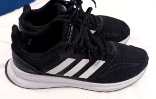 Zapatillas deportivas Adidas en color azul, talla 38.5. Perfectas para running o entrenamiento. - Diseño moderno y ligero. - Suela con amortiguación. - Cierre con cordones. - Hay roces por desgaste (ver las últimas fotos).
