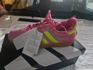 Zapatillas Adidas Handball Spezial en talla 39.5. Nievas en su caja, por error de talla. - Diseño con detalles en rosa vibrante. - Material de ante en tono verde agua suave. - Suela de goma resistente.