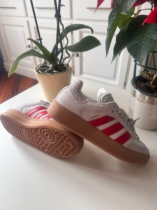 Zapatillas Adidas Samba XLG en talla 37.5. Un clásico reinventado con un diseño moderno y materiales de calidad. - Parte superior de ante y detalles en cuero. - Suela de goma gum. - Tres rayas icónicas de Adidas.