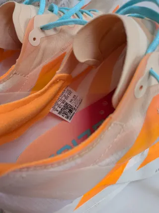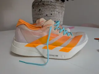Zapatillas de running Adidas Adizero Adios Pro 4 con un diseño llamativo en naranja y blanco (color que cuesta encontrar rebajado) Usados solo en una tirada para probarlos. Necesito medio número más y no puedo cambios ya. Los vendo con caja, CON factura y etiquetas. Precio definitivo