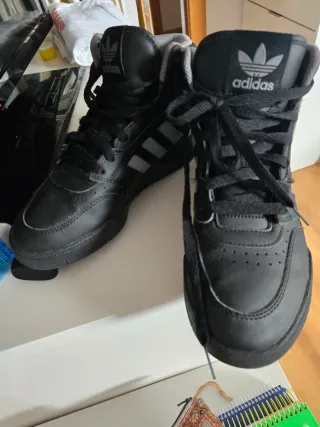 Zapatillas de caña alta Adidas Hoops 3.0. - Diseño en color negro con detalles blancos. - Cierre con cordones. - Logo de Adidas en la lengüeta y en la suela. -Sin apenas uso,las vendo porque no me las pongo