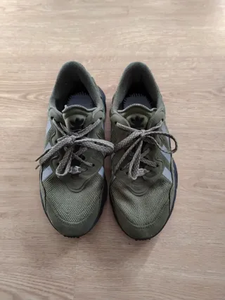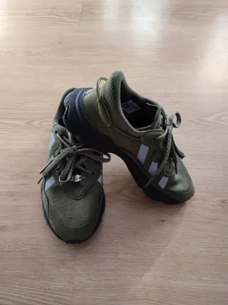 Zapatillas deportivas Adidas en un llamativo tono verde oliva. - Diseño moderno y cómodo. - Detalles en gris claro en los laterales. - Cordones a juego con el diseño.
