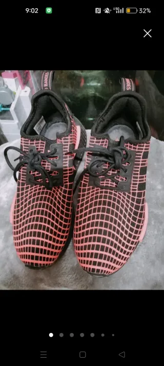 Zapatillas deportivas Adidas con un diseño llamativo. - Patrón de rejilla en color rosa. - Cordones negros. - Tira con logo en la lengüeta.