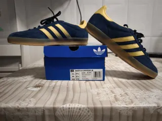 Zapatillas Adidas Gazelle Indoor W en azul y amarillo. - Modelo Gazelle Indoor W. - Talla 44 EU / 9.5 UK. - Suela de goma translúcida.