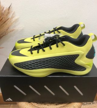 Zapatillas Adidas AE 1 Low en llamativo color amarillo con detalles en negro. Diseñadas para un estilo deportivo y moderno. - Parte superior de malla transpirable. - Suela de goma para mayor tracción. - Cierre de cordones. - Detalle de panel lateral con diseño hexagonal.
