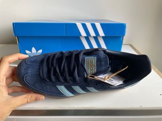 Zapatillas Adidas Handball Spezial en color azul marino y detalles en azul claro. - Parte superior de ante. - Suela de goma. - Tres rayas características de Adidas.