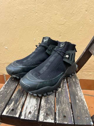 Zapatillas Adidas x White Mountaineering Seeulater Alledo Primeknit Core Black en talla 42 2/3. Vendo por no usar. Las compré por capricho aunque me van un poco pequeñas y solo me las he puesto un par de veces, por eso la suela está un poco sucia pero no está gastada.