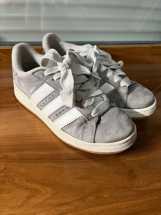 Zapatillas Adidas Campus en color gris. Un clásico para el día a día. - Diseño de ante. - Tres rayas blancas. - Cordones blancos.