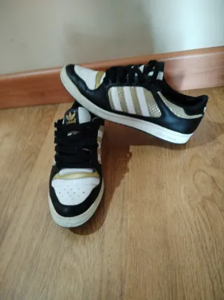 Zapatillas Adidas Polipiel Negra, Dorada y Blanca
